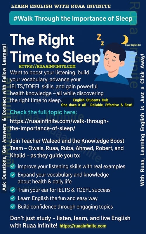 Hello, everyone! Welcome back to Ruaa Infinite. Today, we’re delving into a topic that’s essential for our well-being โ sleep. We’ll explore the right time to sleep, the pros and cons of sleep patterns, and why a good night’s sleep is crucial for our overall health. So, let’s jump into the fascinating world of sleep!
